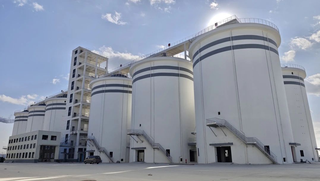 據介紹,淺圓倉單體是項目建設的關鍵點,也是重難點,建成后項目周轉貨物可達80萬噸,是濱海港區規模最大的儲備糧庫項目。施工過程中,項目團隊采用了淺圓倉滑模施工工藝,在圓周均勻布置46個油壓千斤頂,推動模板系統整體緩慢滑升,全時段開展邊滑升邊進行倉壁的鋼筋綁扎和混凝土澆筑作業,在持續作業中實現倉壁一次成型。