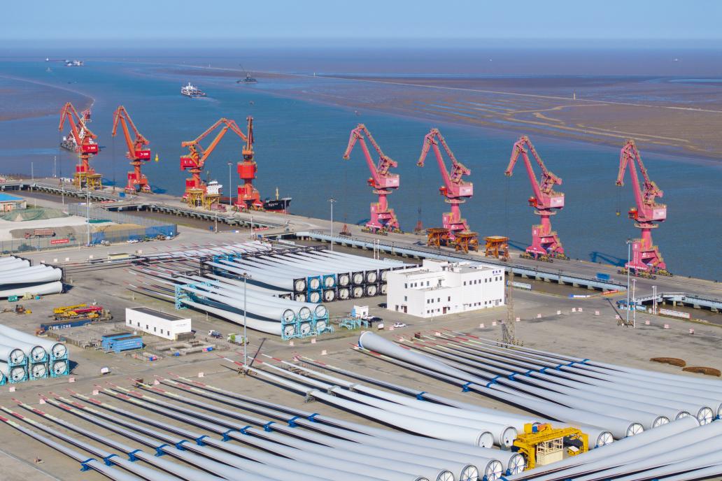一體化不僅是硬件的聯通,更是服務模式的革新。鹽城港創新構建“港口服務產業、產業支撐港口”聯動機制,精準布局物流園區,深化“公鐵水”多式聯運體系,并以“一企一策”服務機制為腹地企業量身定制物流方案,“海上聯結南北,內河貫通東西”的物流新格局日益成熟。“十四五”期間,港口風電設備吞吐量累計近1.3億噸,成功接卸國內最長147米風電葉片;悅達起亞汽車通過濱海港區實現整車出口,為“鹽城造、鹽城出”添上濃墨重彩的一筆。