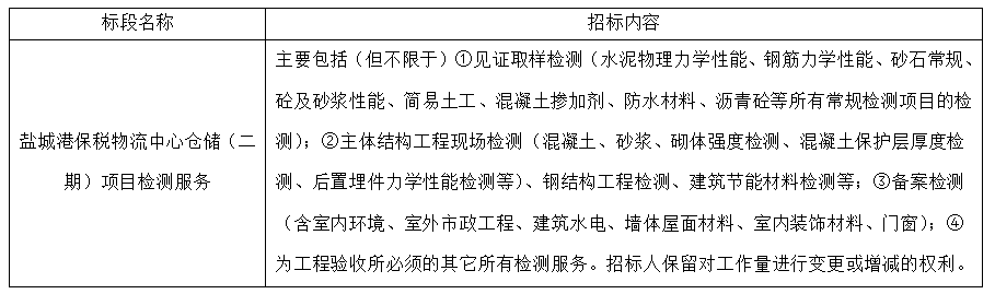 (1)項目名稱:鹽城港保稅物流中心倉儲(二期)項目檢測服務。