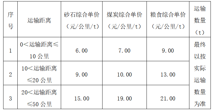 5.運輸要求:由于本項目臨時性、應急性發貨情況較多,出租單位接到裝車通知后,兩小時之內必須到達裝車地點,承運的每批貨物必須專車運送,規定時間內必須到達卸貨地點。