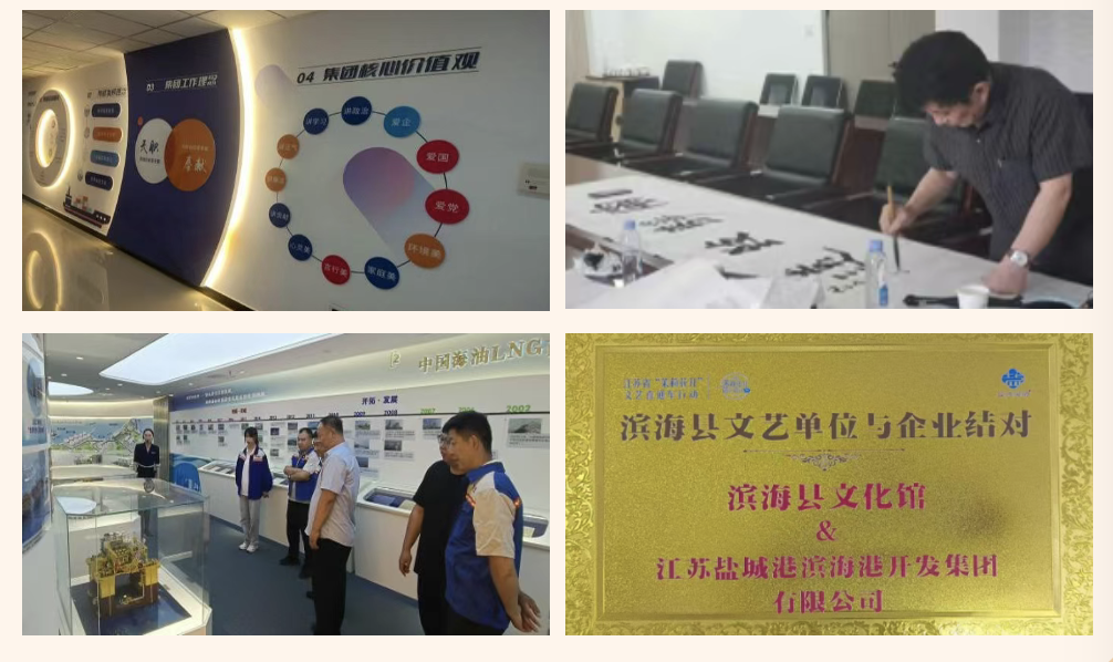 搭建多維“黨建+”融合載體,將“惠企先鋒”黨建品牌創建納入企業文化、業務拓展和優質服務之中去,繪制黨建+文化“一張成果圖”;推行“學技能 強素質 促提升”班子成員“大講堂”講學活動,黨的路線、方針、政策;利用電子屏、宣傳欄、公眾號等宣傳載體,多維傳播正能量,弘揚主旋律;運用“企業文化墻”“廉政文化走廊”及“五廉工作法”,讓廉潔之風在港口經營發展中滌蕩濁流、護航發展;聚焦運營管理、能源開發、人才引進等核心要義,與中海油、海興集團新灘鹽場兩級黨委共同開展黨建共建“雙提升”活動;在江蘇省“茉莉花開”文藝直通車行動中與濱海縣文化館結成對子,開啟文化交流互動活動;邀請縣書法協會會長參與港口“汽車?外貿”主題書法創作活動,為蓬勃發展的外貿新業態增添事半功倍的內生動力。