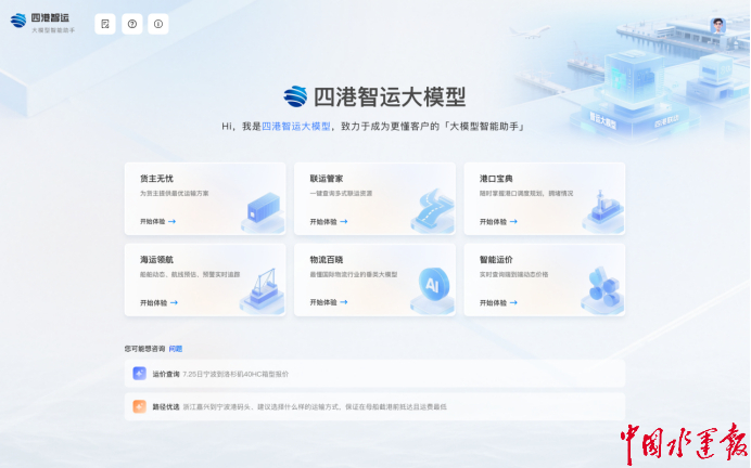針對物流行業(yè)存在的數據孤島、響應遲緩、協(xié)同效率低等痛點,“四港智運”大模型推出貨主無憂、智能運價、海運領航、聯運管家、港口寶典、物流百曉等六大模塊,分別支持智能運輸方案生成、動態(tài)報價、船舶追蹤預警、多式聯運調度、集卡路徑優(yōu)化及行業(yè)智能問答等功能。