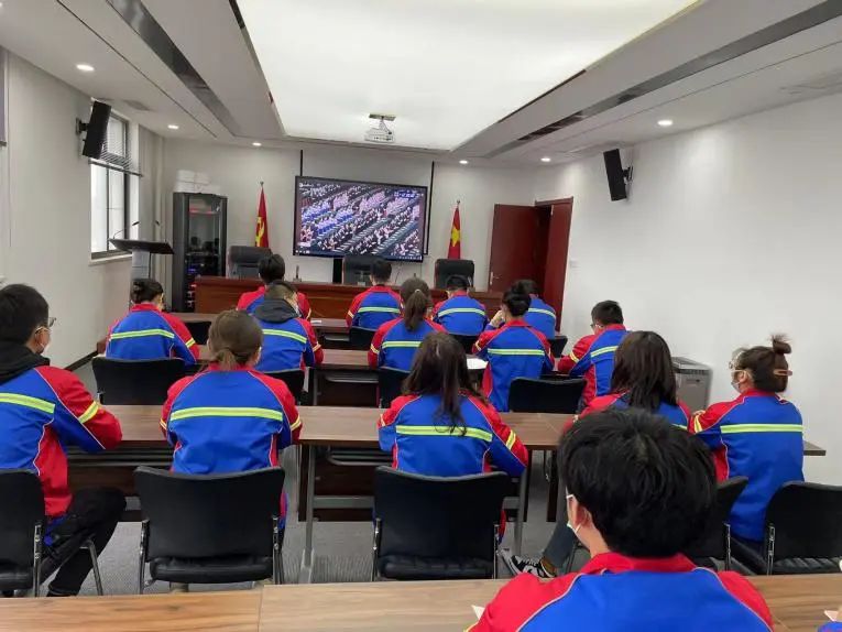 濱海港區工作人員集中收看大會實況直播