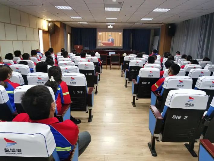 射陽港區工作人員集中收看大會實況直播