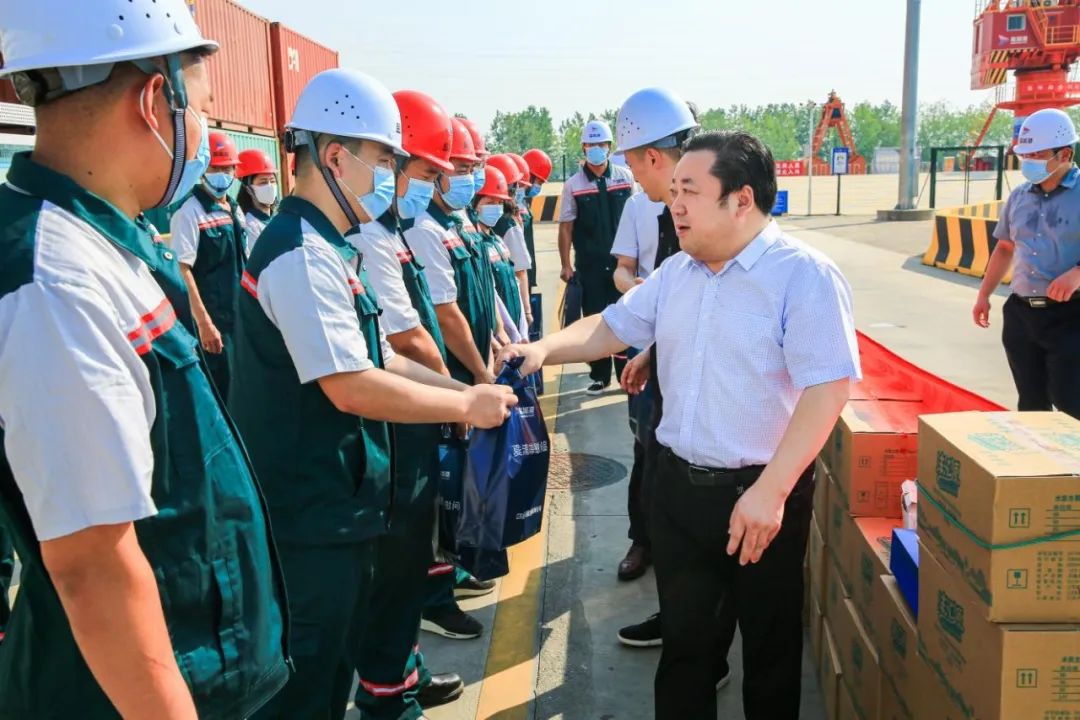 連日來,氣溫節(jié)節(jié)攀升、熱浪襲人。在亭湖港區(qū),周正雄和堅守崗位的工作人員一一握手,感謝大家的默默奉獻,為保障港口安全平穩(wěn)運行而付出的努力,并向他們送上慰問品。他說,港口作為交通運輸行業(yè)的重要組成部分,既是能源消耗和碳排放的重要來源,也是推動綠色發(fā)展、實現(xiàn)碳中和的關(guān)鍵領(lǐng)域。要堅持貫徹落實集團“十四五”關(guān)于綠色生態(tài)港建設(shè)的部署要求,以系統(tǒng)推進綠色生態(tài)港建設(shè)為重點,全面提升港口基礎(chǔ)設(shè)施、裝備和運輸組織的綠色發(fā)展水平,努力做到“低碳排放”乃至“零碳排放”,著力推動港口整體綠色轉(zhuǎn)型,全力推進“綠色、生態(tài)、智慧、平安、美麗”港口建設(shè),助力鹽城港集團實現(xiàn)更加健康可持續(xù)發(fā)展。與此同時,要始終堅持“以人為本”,時刻把一線職工的健康安全放在首位,結(jié)合高溫天氣碼頭施工作業(yè)要求,抓嚴抓細防暑降溫各項工作,全力改善職工夏季生產(chǎn)生活條件和工作環(huán)境,及時對防暑降溫各類措施落實情況進行再監(jiān)督再檢查,切實保障職工健康權(quán)益,確保防暑降溫各項工作有效落實到位。一線員工要進一步提高安全意識,積極配合做好防暑降溫工作,在全力保障健康安全的前提下,合理安排作息時間,繼續(xù)保持斗志昂揚的精神面貌,發(fā)揚不畏艱苦、勇于奉獻的精神,在高溫期間有序開展各項工作,努力在平凡的崗位上做出不平凡的成績,為集團高質(zhì)量融合發(fā)展積蓄更多動能。