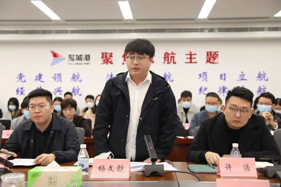 周正雄在講話中指出,黨的二十大報告對青年提出了殷切期望。近年來,集團黨委積極響應市委人才隊伍建設總體要求,始終堅持“強企興業、人才優先”戰略導向,把人才建設擺在工作的重要位置,高度重視名校優生和學位人才的培養工作,為青年人才成長創造良好條件并寄予厚望。希望大家時刻以“立大志、明大德、成大才、擔大任”為己任,學深悟透習近平總書記對新時代中國青年寄予的厚望和殷切囑托,牢固樹立“格局決定結局”的人生觀和價值觀,將自身學業與本崗職位進行有機結合,將集團黨委對大家的信任和關懷有效轉化為激勵自己做好本職工作的強大動力,在工作中多學習、多思考,盡快進入工作狀態,為鹽城港航事業高質量融合發展注入新動力。