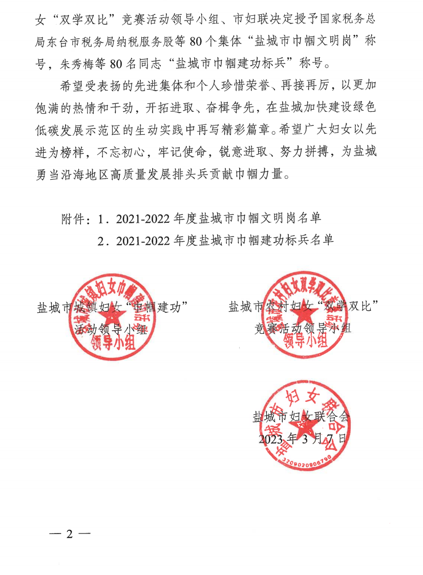 ????近日,市城鎮婦女“巾幗建功”活動領導小組、市農村婦女“雙學雙比”競賽活動領導小組、市婦女聯合會聯合發布《關于命名2021-2022年度全市城鄉婦女崗位建功先進集體(個人)的決定》,鹽城港智慧港口公司海燕班組榮獲“2021-2022年度鹽城市巾幗文明崗”榮譽稱號,鹽城港項目建設管理咨詢公司黨總支書記、執行董事、總經理劉春燕榮獲“2021-2022年度鹽城市巾幗建功標兵”榮譽稱號。