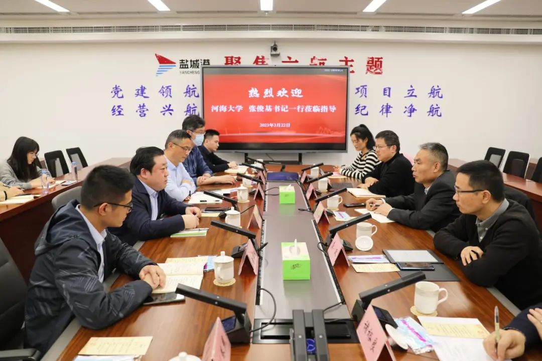 周正雄對張俊基一行的到訪表示歡迎,并對河海大學在鹽城港發(fā)展過程中給予的關(guān)心、關(guān)注和支持表示感謝,并介紹了鹽城港相關(guān)情況。他說,張俊基書記一行到訪,不僅是積極落實中央“大興調(diào)查研究之風”的具體實踐,同時也為鹽城港實現(xiàn)更高質(zhì)量發(fā)展帶來了有力的理論支撐和智力支持。近年來,隨著江蘇沿海發(fā)展戰(zhàn)略上升為國家戰(zhàn)略,全省沿海基礎(chǔ)設(shè)施穩(wěn)步推進,立體交通初具雛形,為港口的發(fā)展打下了堅實基礎(chǔ)。港口作為沿海發(fā)展的重要增長極,市委、市政府審時度勢,將全市海港和內(nèi)河港區(qū)融為一體,組建成立鹽城港集團,對沿海、內(nèi)河岸線資源實行一體化運營,充分利用各港區(qū)的區(qū)位和自然條件優(yōu)勢,形成海河聯(lián)運一體化發(fā)展格局,進一步實現(xiàn)港口資源使用效益的最大化。集團成立以來,緊抓多重戰(zhàn)略疊加機遇,不斷整合優(yōu)化內(nèi)外部資源,全力以赴抓好生產(chǎn)經(jīng)營,在2021年首次躋身全國億噸大港行列,2022年位列全國40個億噸港口的第28位,貨物吞吐量增幅及集裝箱量增幅分別位列全國54個沿海港口的第一和第二位,進一步打響了鹽城港品牌。