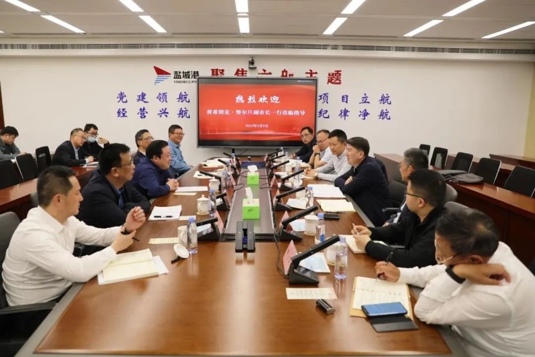 黃希別克·努爾旦在認真聽取相關情況匯報后,對鹽城港集團近年來取得的各項成績表示肯定。他說,鹽城港集團組建以來,緊跟市委、市政府決策部署,堅持高站位謀劃,發展理念超前,規劃精準、思路清晰、舉措得力,各項事業發展成效明顯,貨物吞吐量、集裝箱裝運量等主要指標增速在全國名列前茅,充分發揮了國有資本對全市經濟社會發展的帶動引領作用,為我市高質量發展作出了重要貢獻。港口作為城市發展的重要部分,具有獨特的開放優勢和區域優勢,為城市創造良好的發展環境。鹽城港地處淮河生態經濟帶、江蘇沿海發展、長三角一體化“一橫一縱一圈”國家戰略機遇疊加地帶,同時也是淮河入海門戶,區位優勢明顯,擁有廣闊的發展前景。希望鹽城港進一步聚焦主責主業,以強有力的工作合力不斷加強河海聯運布局統籌,持續深耕淮河流域貨源市場,加快推進中歐接續班列開通前的各項籌備工作,著力強化內外循環銜接,加快融入“一帶一路”,為全市港航事業高質量發展貢獻更多鹽城港力量。