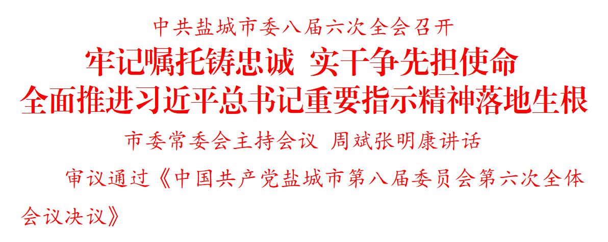 全會審議通過《中國共產(chǎn)黨鹽城市第八屆委員會第六次全體會議決議》,討論了《中共鹽城市委常委會2023年度工作情況報告》《中共鹽城市委常委會2023年度落實全面從嚴(yán)治黨主體責(zé)任情況報告》。