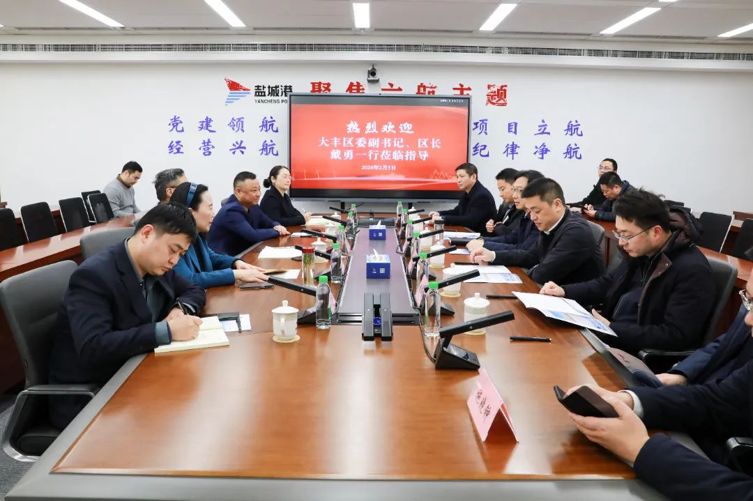 2月5日,大豐區委副書記、區長戴勇率隊拜訪集團,雙方就深化合作進行交流洽談,集團黨委副書記、董事、總經理陸帥接待戴勇一行。大豐區委常委、大豐港經濟開發區黨工委書記黃同城,集團黨委副書記、紀委書記周旭東,集團副總經理袁欣等參加。