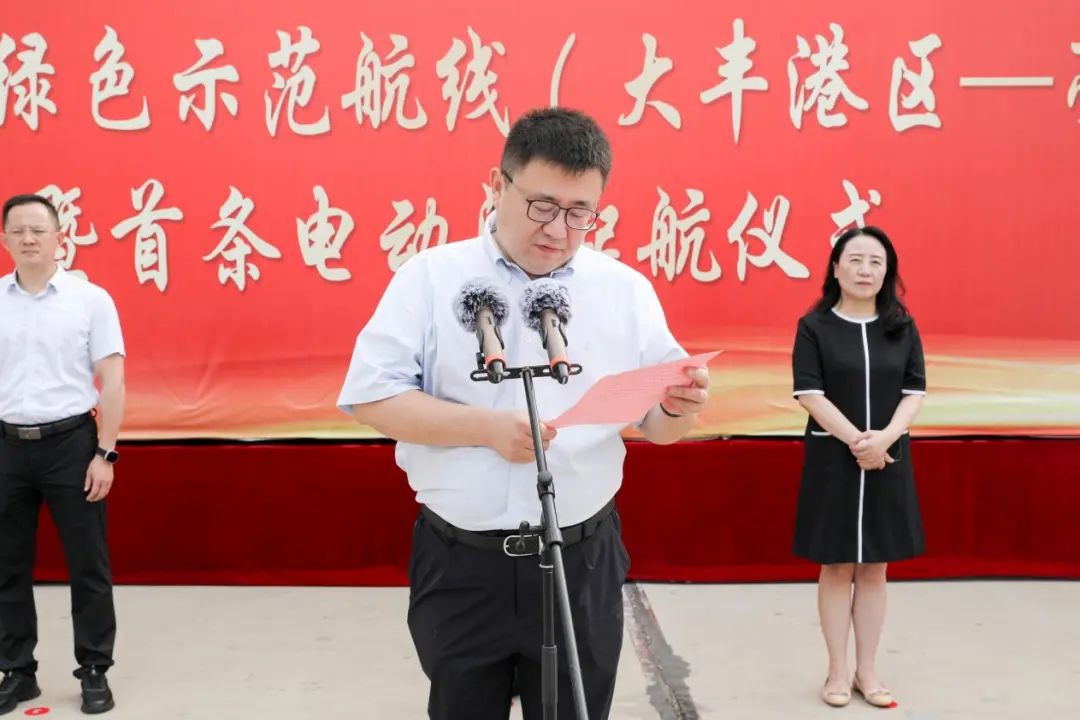 為積極策應“水運江蘇”建設,大力發展綠色低碳內河航運,推動鹽城港航事業高質量發展。8月6日,鹽城港集團隆重舉行內河集裝箱綠色示范航線開航暨首條電動船起航儀式。集團黨委副書記、董事、總經理陸帥,集團副總經理袁欣,集團黨委委員、副總經理孫永峰,相關單位及部門負責同志,船貨代企業代表等參加。