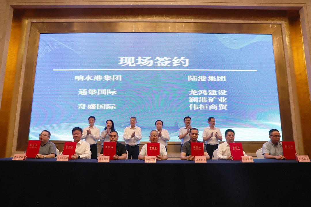 活動現場,大豐港區、濱海港區、射陽港區、響水港區、航運、陸港、保稅、供應鏈等相關負責同志作業務推介并與企業代表簽訂合作協議。