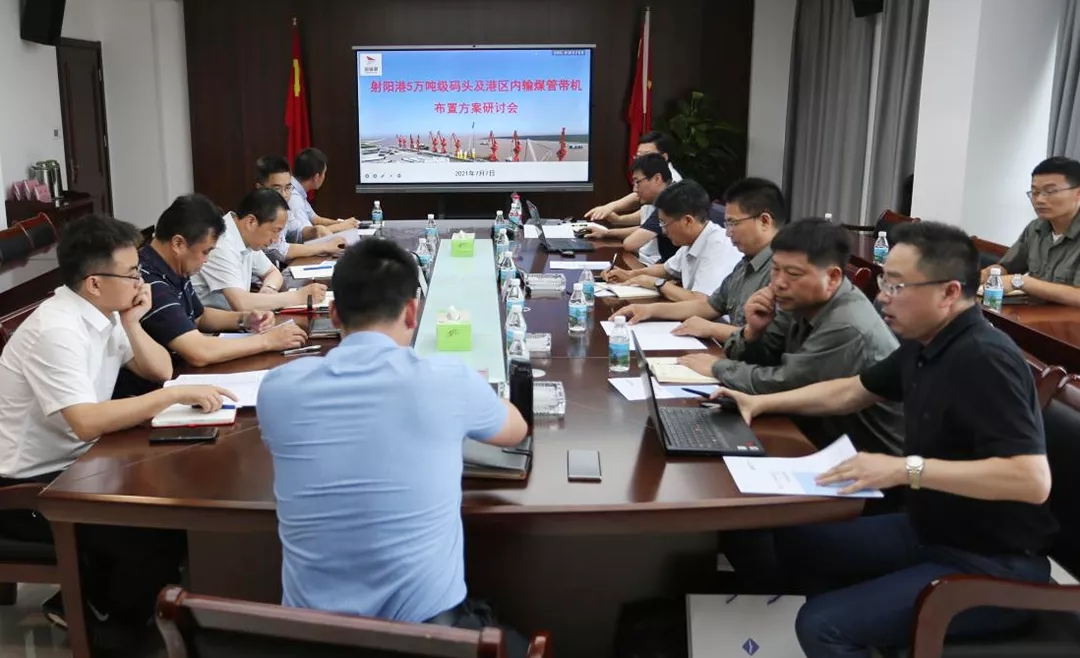 會議就射陽港區5萬噸碼頭6#、7#泊位的平面布置,以及電廠2×100萬千萬燃煤機組項目在港區內的輸煤管帶機走向等問題進行了深入交流和討論,并對相關方案進行了優化調整。