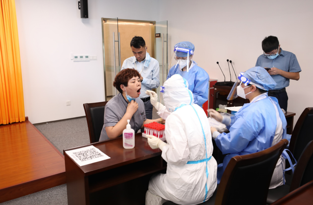 8月18日,先鋒社區黨員干部會同社區衛生服務中心醫務工作者來集團,為集團機關全體員工提供上門核酸檢測服務,齊力共筑抗疫“長城”。