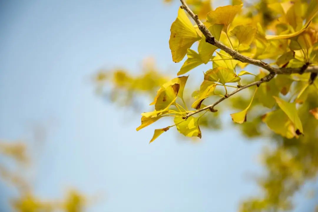 秋天的銀杏葉,遠沒有春夏時的那種生機勃勃,但它是一種飽滿的成熟,等到了深秋,銀杏葉落地變成明年春葉的養(yǎng)料,這種默默奉獻的精神讓人敬佩。
