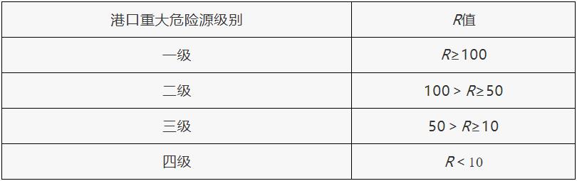 根據(jù)計算出來的R值,按表4確定危險貨物重大危險源的級別。