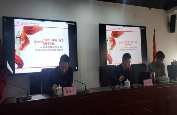 “憲法宣傳周”活動開展以來,各級公司紛紛在醒目位置張貼憲法宣傳海報,營造了濃厚的宣傳氛圍。12月4日,集團本部及各子(控)公司全員開展憲法學習教育活動。集團法務部推出《法治護航》(12·4國家憲法日專刊),本期??x本匯編了憲法原文、憲法沿革、習近平總書記關于憲法的重要論述、憲法學習自測題;大豐港區發布了憲法知識公示欄,組織員工參觀學習;響水港區發放了憲法小冊子,組織“憲法學習進工地”活動;集團官網“法治護航”版塊專題發布《憲法一直在我身邊》《憲法讓生活更美》《我與憲法》視頻,通過一系列生動圖片、視頻,形象生動普及憲法知識。