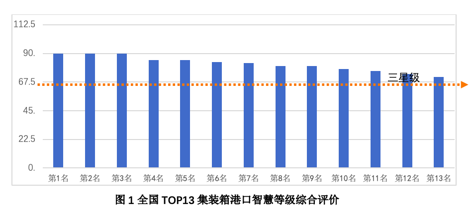 需要說明的是,目前暫時以全國(不含港澳臺)TOP13集裝箱港口為對象,首次探索開展了國內智慧港口等級評價。下一步將進一步完善智慧港口等級評價指標體系和方法,加強國際對標,擴大延伸評價范圍,為我國智慧港口建設發展提供有益的參考依據。
