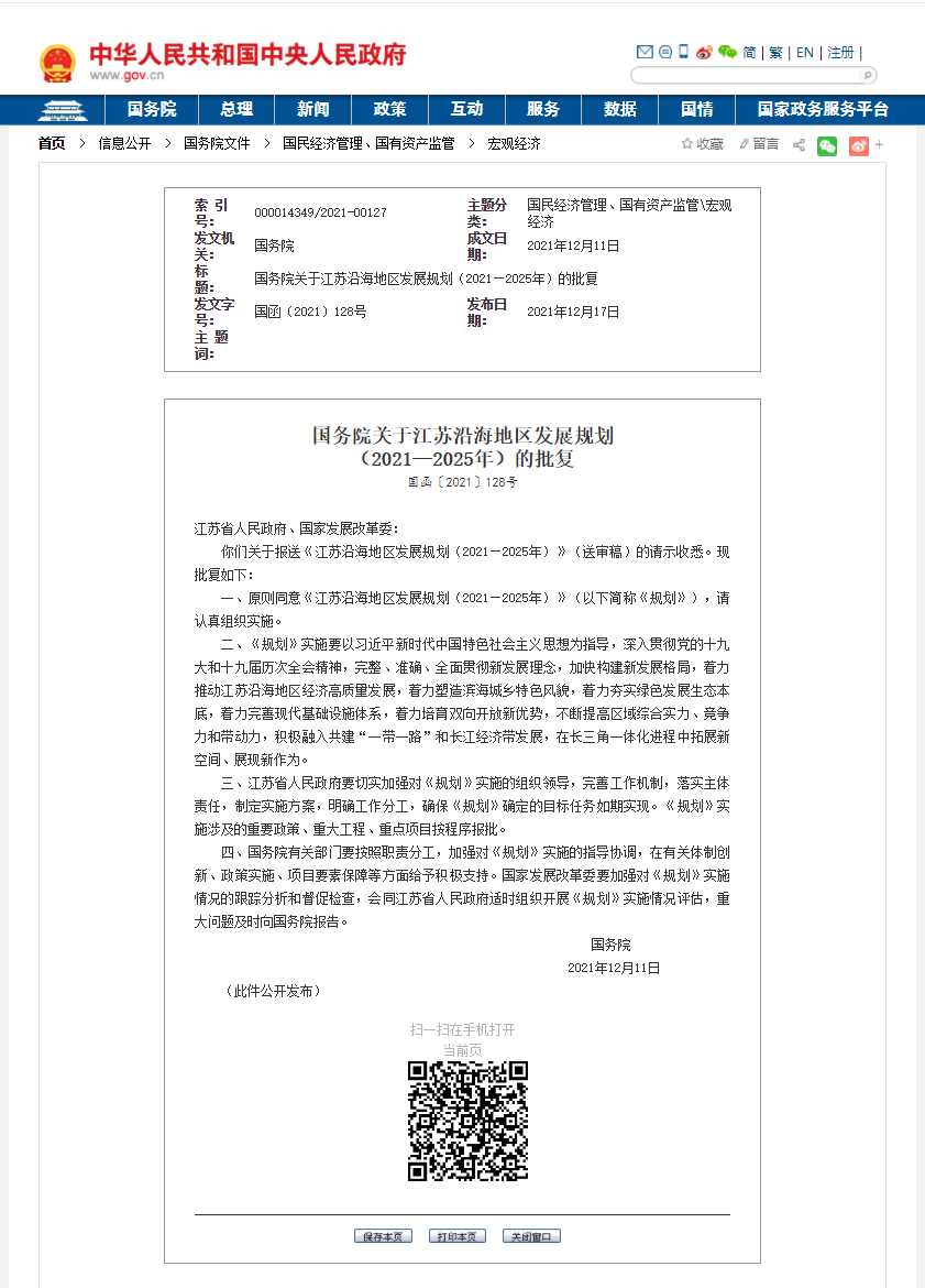 一、原則同意《江蘇沿海地區(qū)發(fā)展規(guī)劃(2021—2025年)》(以下簡稱《規(guī)劃》),請認(rèn)真組織實(shí)施。