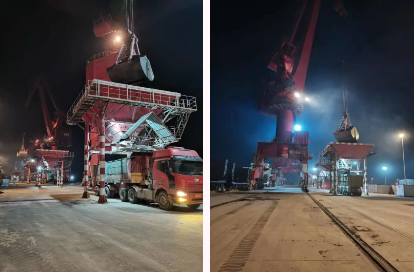 面對(duì)壓力,響水港區(qū)生產(chǎn)經(jīng)營(yíng)團(tuán)隊(duì)始終站在服務(wù)客戶角度,急客戶所急,統(tǒng)籌考慮利用所有碼頭資源,綜合考慮客戶需求、船舶類型等方面,碼頭設(shè)施設(shè)定生產(chǎn)目標(biāo),靶向發(fā)力,利用甲板船自卸特點(diǎn),結(jié)合目前重件碼頭尚沒有起吊設(shè)施只有碼頭岸線現(xiàn)況,經(jīng)與海事等部門溝通協(xié)商,最終安排“源鑫168”甲板船靠泊重件碼頭泊位進(jìn)行自卸,將“通洋旭瑞”和“盛山”兩艘次大輪靠泊4#、5#泊位作業(yè),確保三條大輪同時(shí)順利完成接卸任務(wù)。