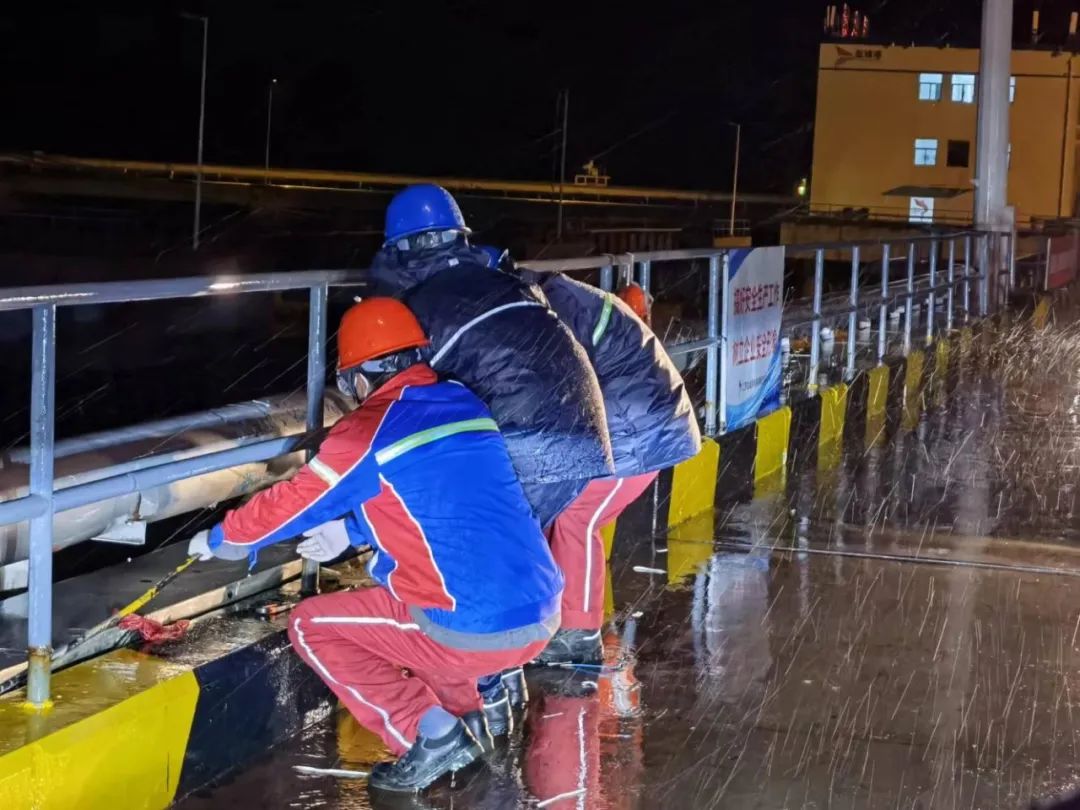 風雨險阻無可懼,百折不撓向前進。糧食碼頭分公司多次組織召開“維保計劃”專題會,重點突出安全用電、安全裝置、除銹補漆、電氣消防、防風裝置的管控排查。維修組充分發揚“鐵軍”精神,沒有一刻懈怠,進入24小時待命狀態。面對惡劣天氣引發棧橋電路斷裂的突發狀況,機修人員克服不利因素,奮戰一線,頂風冒雨進行搶修,爭分奪秒為安全生產保障電力供應。