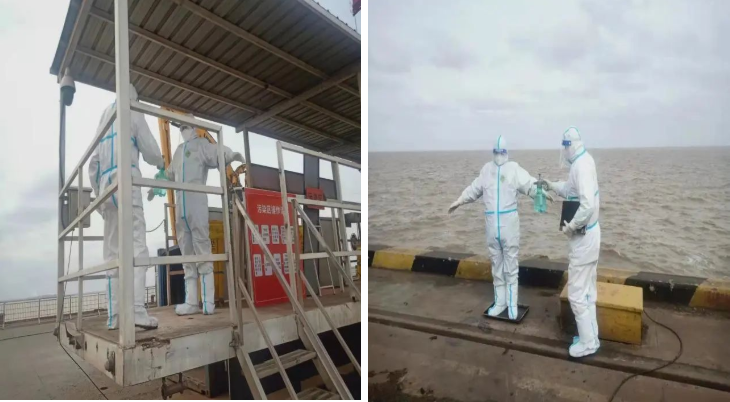 疫情就是命令,防控就是責任。為認真貫徹落實國家、省、市委、市政府和集團的決策部署,嚴格按照“外防輸入,內(nèi)防反彈”的要求,外派人員全部進入一線作業(yè)專班,大家主動放棄休息,按照《港口及一線人員新冠肺炎疫情防控工作指南》的要求:佩戴防護口罩、防疫手套、護目鏡、防護服等防疫用品,做好體溫檢測和信息登記,并禁止進入船員生活區(qū)域,不與船員接觸。作業(yè)完畢后,嚴格按照規(guī)定采取消毒措施。