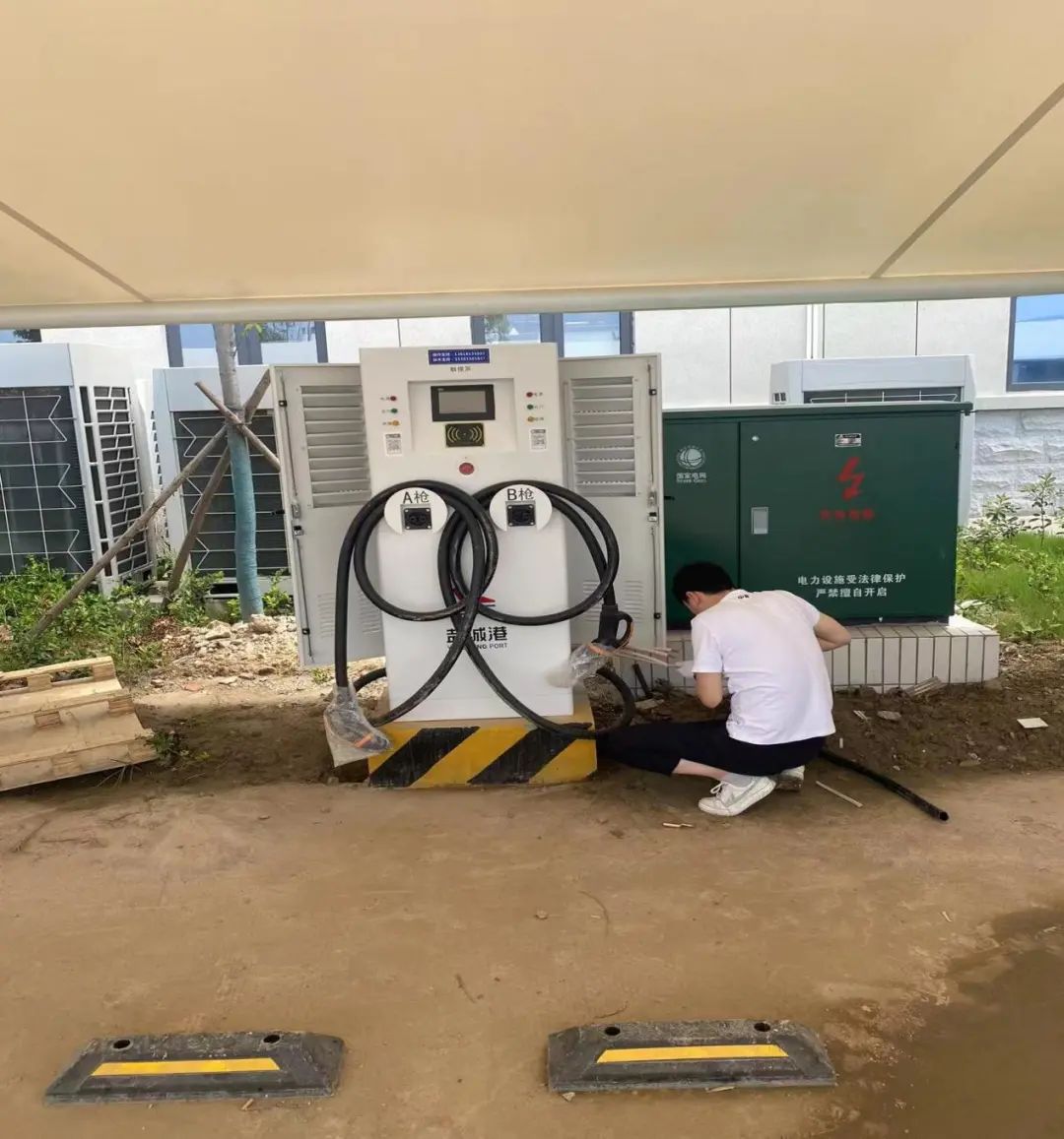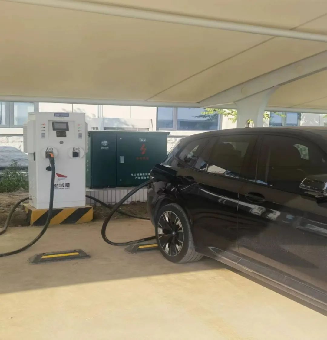 7月4日,亭湖港區的電動汽車充電站完成調試,正式投入使用。
