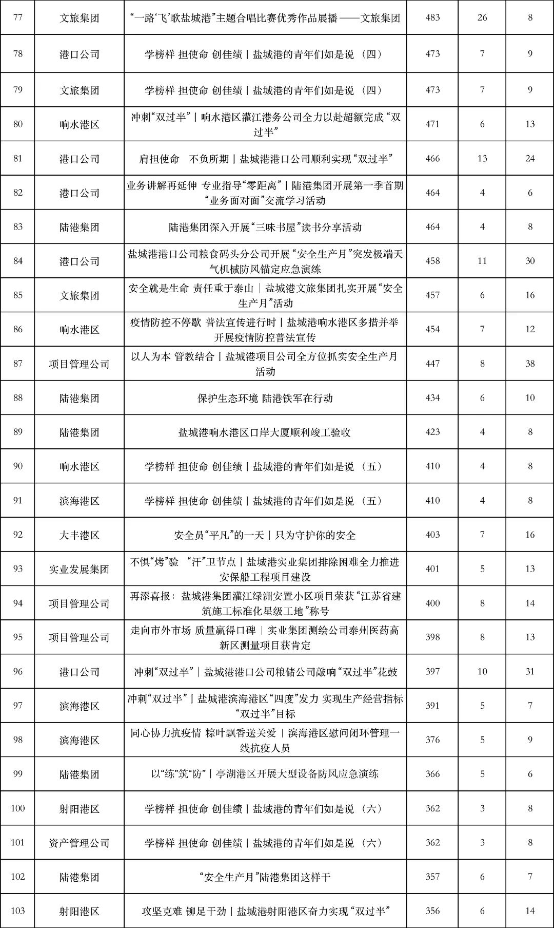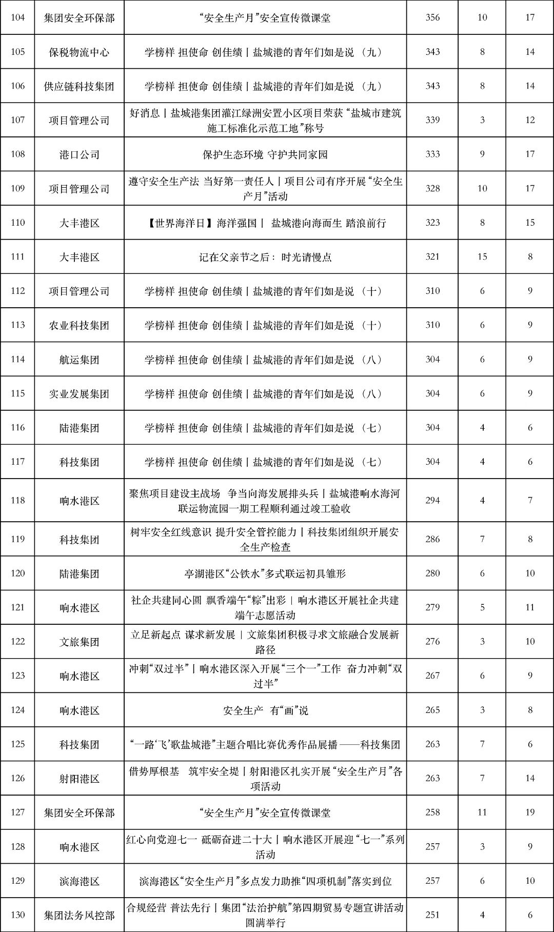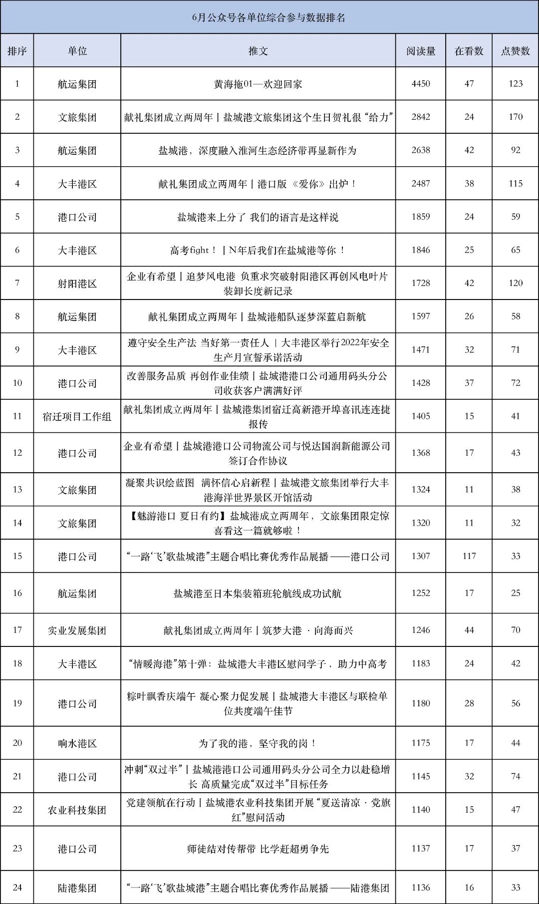 下面,讓我們一起回顧六月份鹽城港集團(tuán)微信公眾平臺的精彩表現(xiàn)。