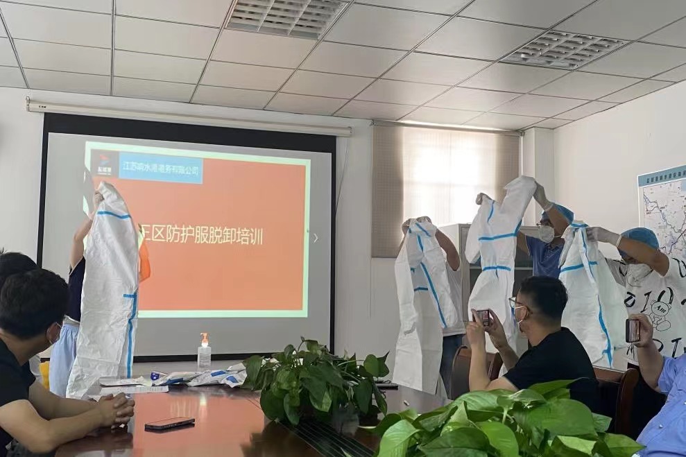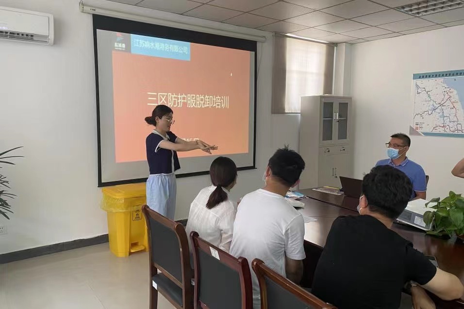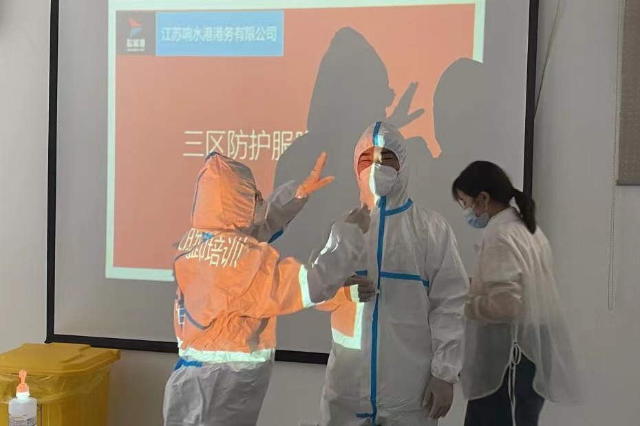 為堅決打好新型冠狀病毒疫情防控阻擊戰(zhàn),全面提高應對疫情的響應能力,熟悉應急處置具體流程,從嚴抓好疫情防控工作,近日,響水港區(qū)港務公司特邀響水縣港城醫(yī)院專職醫(yī)護人員,對港區(qū)作業(yè)人員進行疫情防控相關(guān)的三區(qū)防護服穿脫消殺培訓。