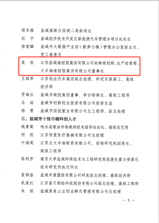 近日,鹽城市婦女聯合會發布《關于表揚鹽城“十行百佳”巾幗典范暨鹽城市三八紅旗手的通報》,袁欣同志榮獲“鹽城市十佳巾幗項目功臣”“鹽城市三八紅旗手”榮譽稱號。