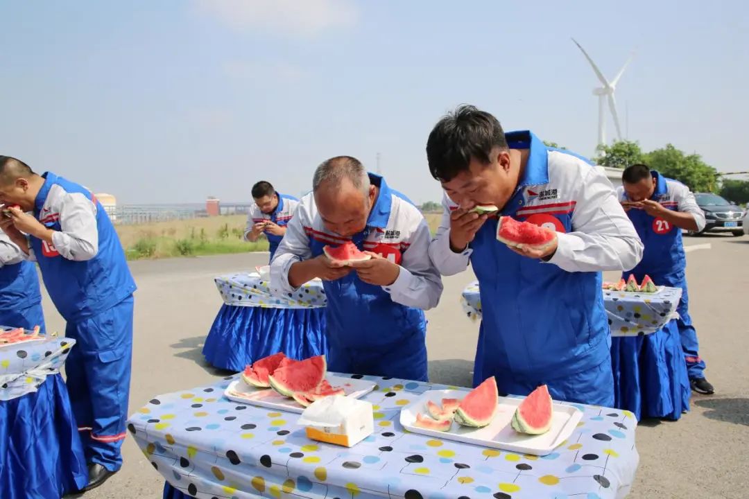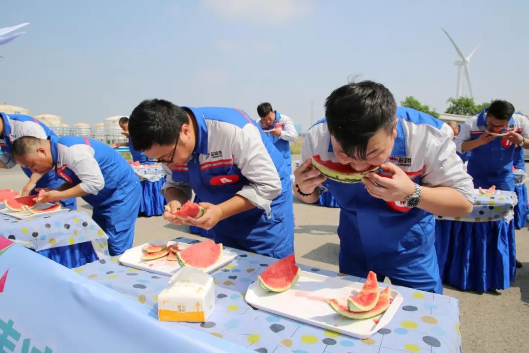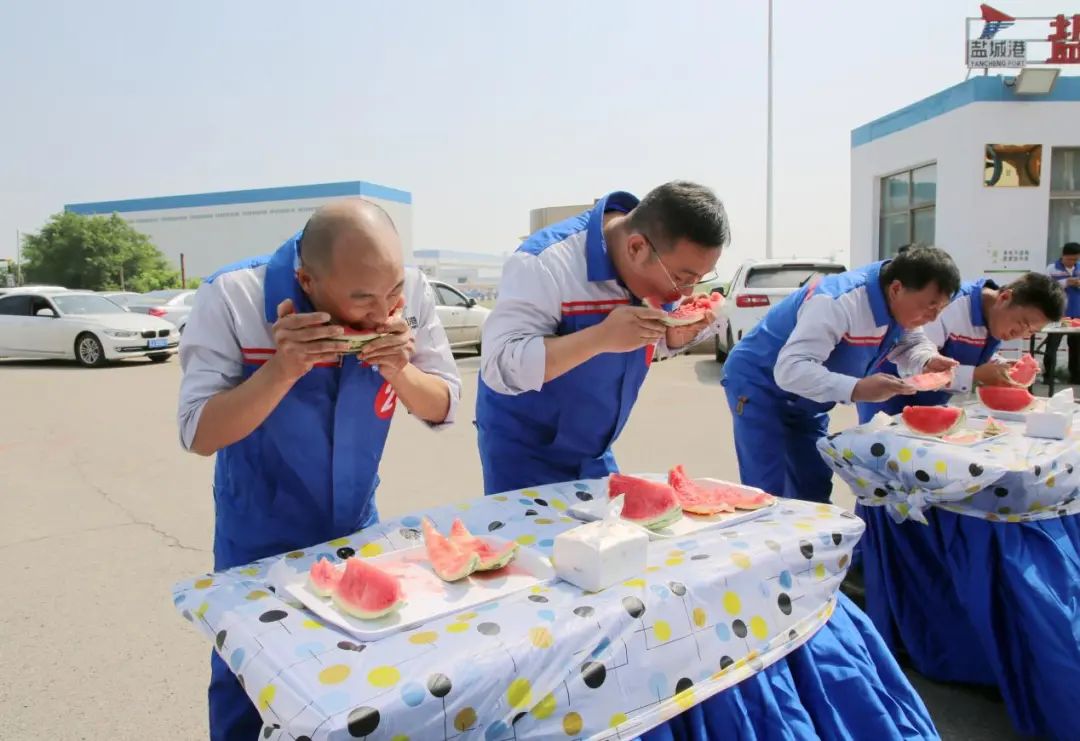 剛剛過去了小暑,大暑又匆忙到來,地表熱力值持續(xù)爆表,大豐港區(qū)一線職工不懼酷暑,堅守一線,與炎熱打上了一場持久戰(zhàn)。在這炎熱的酷暑時節(jié),鹽城港大豐港區(qū)滿載著“一家人、在一起、手足情、過日子”的深情關(guān)愛,給一線的職工帶來了一場西瓜的狂歡之旅,在大豐港區(qū)石化碼頭舉行“瓜分甜蜜清涼一夏”吃西瓜比賽,和順國貿(mào)、中南匯、油品化工碼頭、成品油一線職工代表參賽。