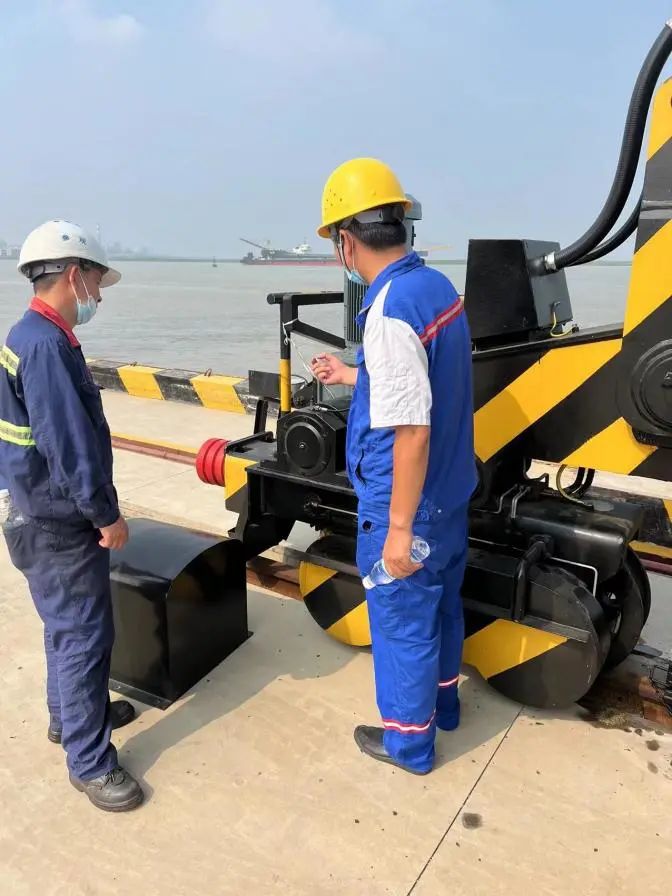 門機(jī)設(shè)備裝置涵蓋了電氣、機(jī)械、油路等眾多類型,回路復(fù)雜,工藝繁瑣,如細(xì)節(jié)處理不到位,后期極有可能存在作業(yè)隱患。自重件碼頭項(xiàng)目組裝工作開展以來,專項(xiàng)工作組成員頂著酷暑不懼“烤”驗(yàn),克服時(shí)間緊、任務(wù)重、人手少的實(shí)際困難,堅(jiān)持經(jīng)常性現(xiàn)場(chǎng)巡檢,保證每個(gè)關(guān)鍵項(xiàng)目都有現(xiàn)場(chǎng)督查,每個(gè)部件交付都安排相應(yīng)崗位人員參培。對(duì)在現(xiàn)場(chǎng)督查過程中發(fā)現(xiàn)的部分油管母線連接松動(dòng)等問題,工作組第一時(shí)間要求廠家按標(biāo)準(zhǔn)進(jìn)行限時(shí)整改,并督促施工方在現(xiàn)場(chǎng)嚴(yán)格把關(guān),確保后期驗(yàn)收工作高質(zhì)量、高標(biāo)準(zhǔn)按時(shí)完成。