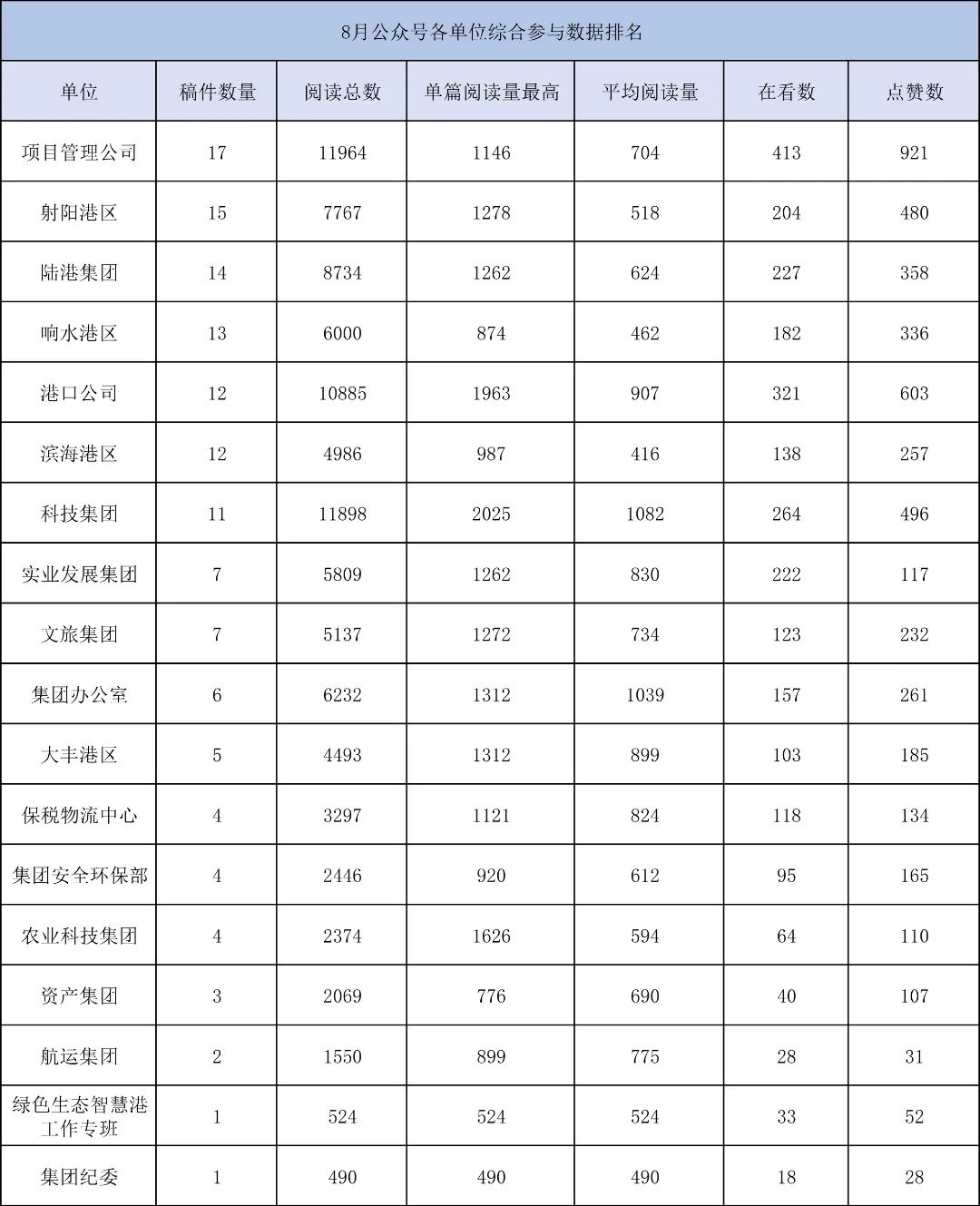 告別熱情似火的8月,迎來天高云淡的9月,鹽城港微信公眾號(hào)8月份排行榜又如期而至,與大家見面了。與7月份榜單相比,8月份榜單有哪些變化呢?我們一起來看看。