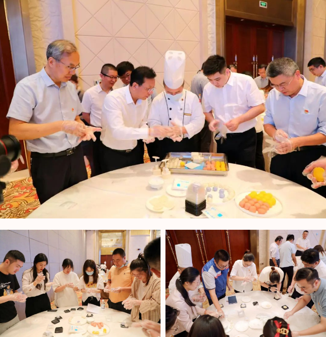 隨后開展了制作“廉潔”字樣的月餅活動,大家在糕點老師的指導下躍躍欲試,揉冰皮、包餡料、壓模具,分工合作,一個個印有廉潔圖案的“廉心”月餅制作完成。