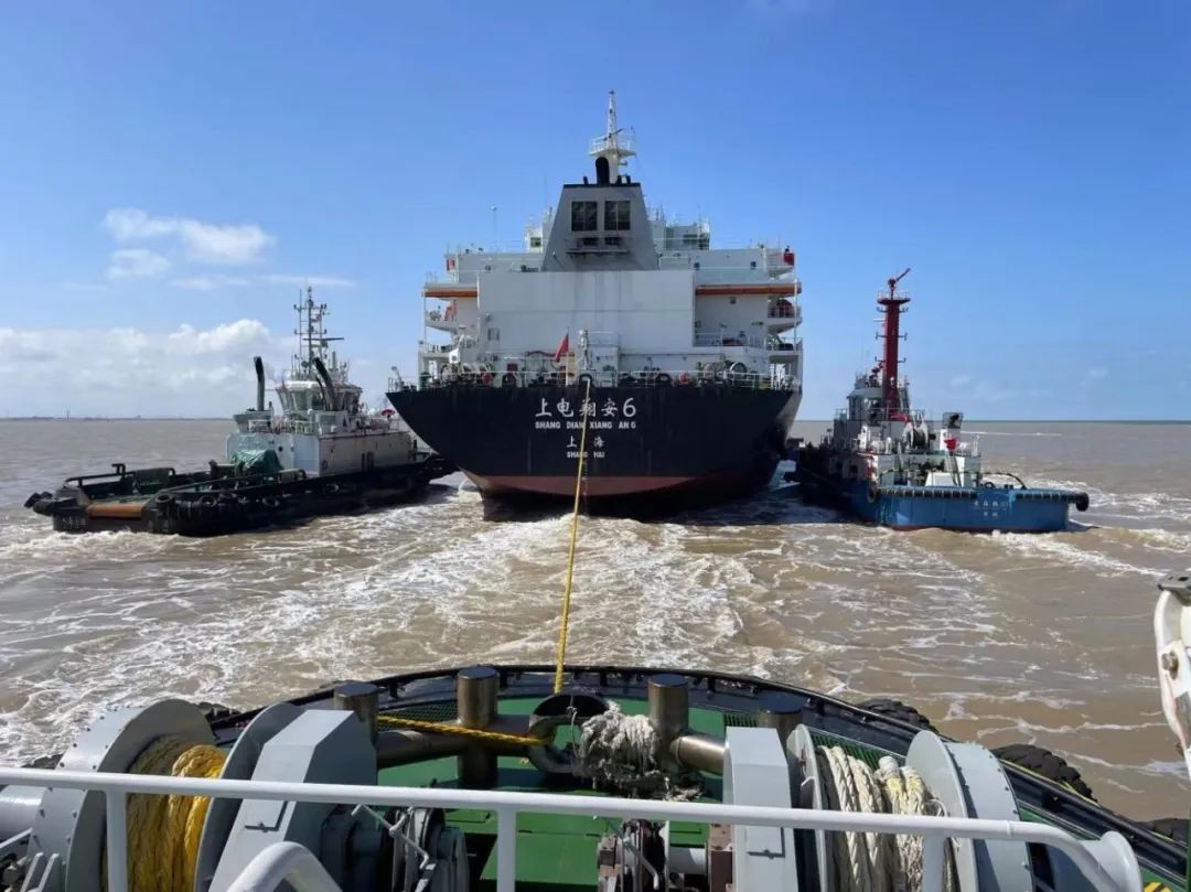 中午12時(shí),在引航員的指揮下,現(xiàn)場(chǎng)拖輪步調(diào)一致,統(tǒng)一行動(dòng)。在靠離泊過程中,持續(xù)加強(qiáng)海事、引航、拖輪、碼頭、船舶五方協(xié)同聯(lián)動(dòng),不斷調(diào)整角度和拖力,歷經(jīng)3個(gè)小時(shí)的努力,圓滿完成了200米船舶的靠離泊等多項(xiàng)任務(wù)。
