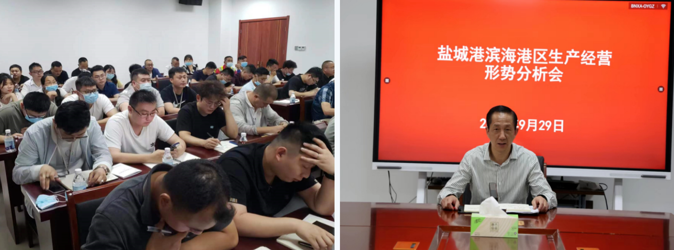 近日,濱海港區召開生產經營形勢分析會議,及時傳達集團會議精神,全面總結前三季度生產經營工作,深入分析當前生產工作中存在問題和不足,并就下一階段工作做詳細的安排部署。