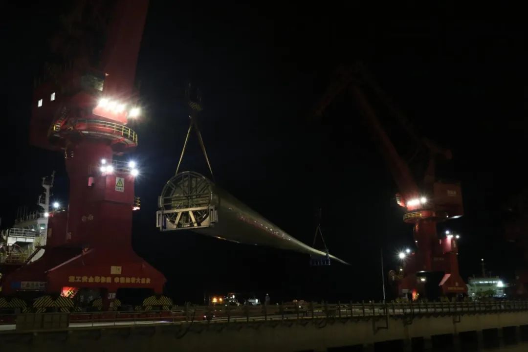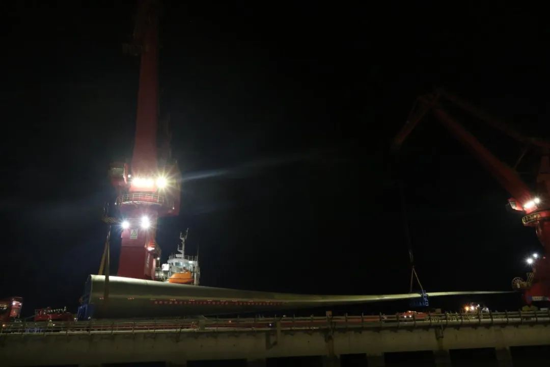 “指揮就位”“車輛就位”“裝卸就位”“安全員就位”......9月30日晚,在一系列作業(yè)準備就緒后,全球最長風電葉片在鹽城港射陽港區(qū)風電碼頭成功完成裝卸,再度刷新鹽城港裝卸風電葉片長度新紀錄,向黨的二十大獻上了一份厚禮。