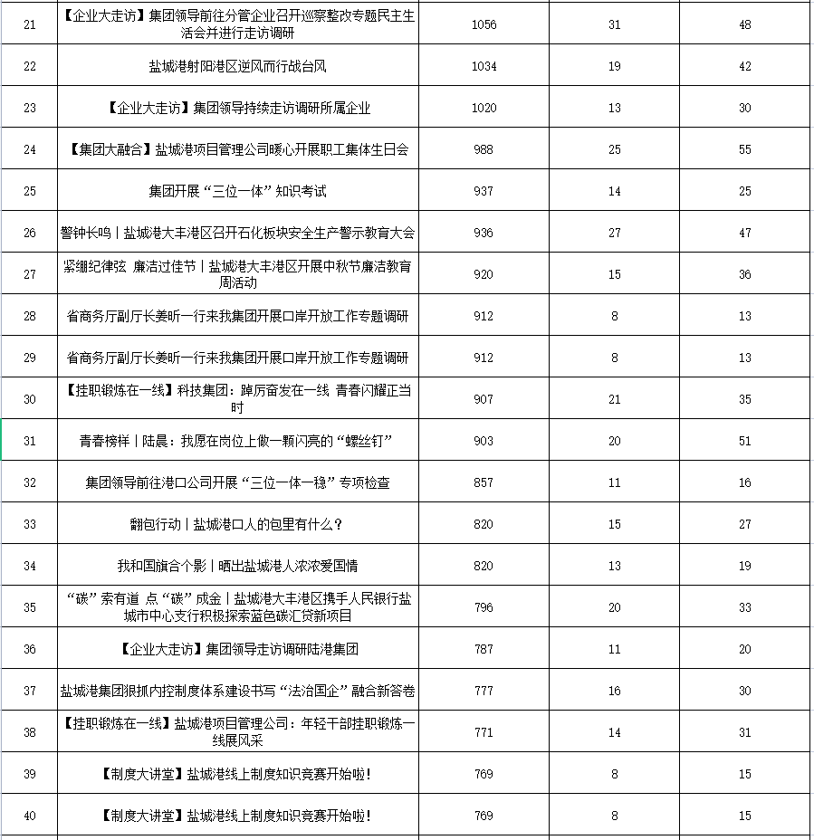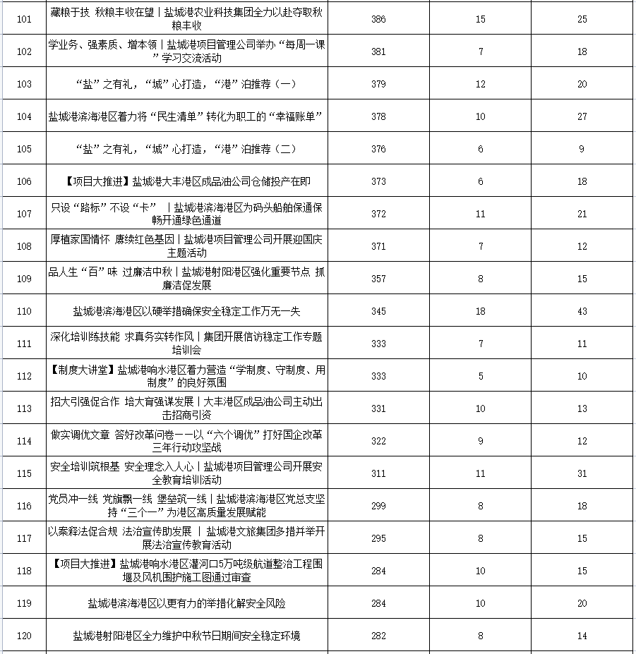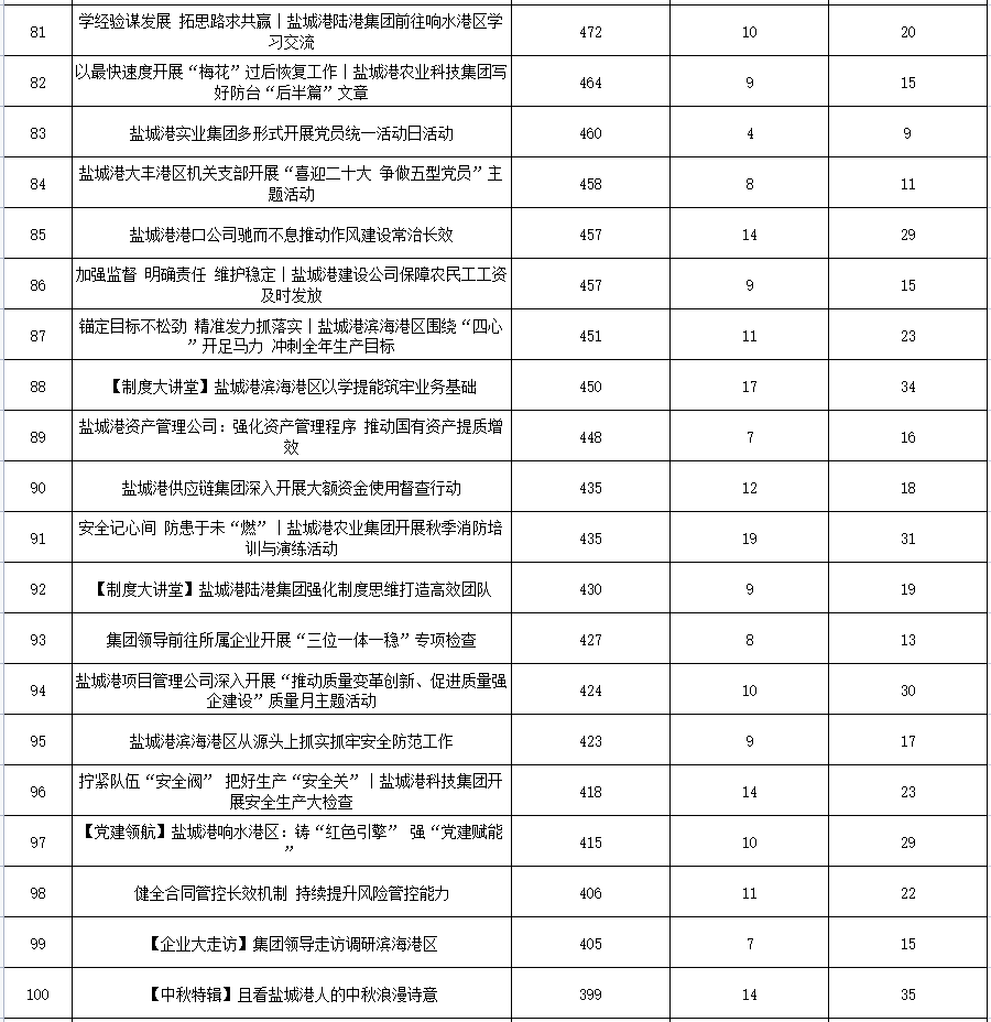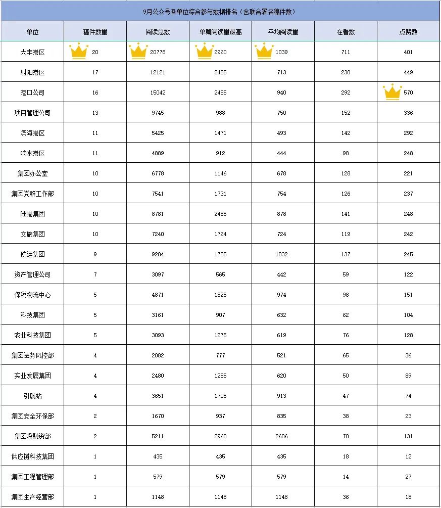 公眾號(hào)各單位綜合參與數(shù)據(jù)排名