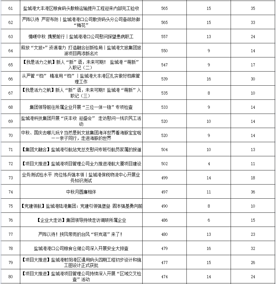 9月,新聞宣傳戰(zhàn)線緊扣集團(tuán)中心工作,“五大活動(dòng)”宣傳扎實(shí)推進(jìn),如火如荼;聚焦中秋等熱點(diǎn),用心策劃,創(chuàng)新呈現(xiàn)......全方位講好鹽城港故事,傳播鹽城港聲音。