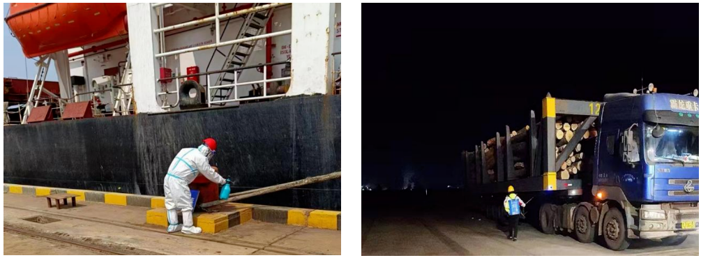 各辦公區域和生產場所按規定統一采購消毒液,對人員密集活動區域進行防疫消殺工作,特別在門崗、磅房、公用衛生間、候工室等公共場所進行定期消殺。碼頭靠船作業嚴格遵照《港口及其一線人員新冠肺炎疫情防控工作指南(第十版)》要求,嚴格執行碼頭作業消殺程序,將“非必要不登船”、開展健康承諾、離港后核酸檢測等工作落細落實。