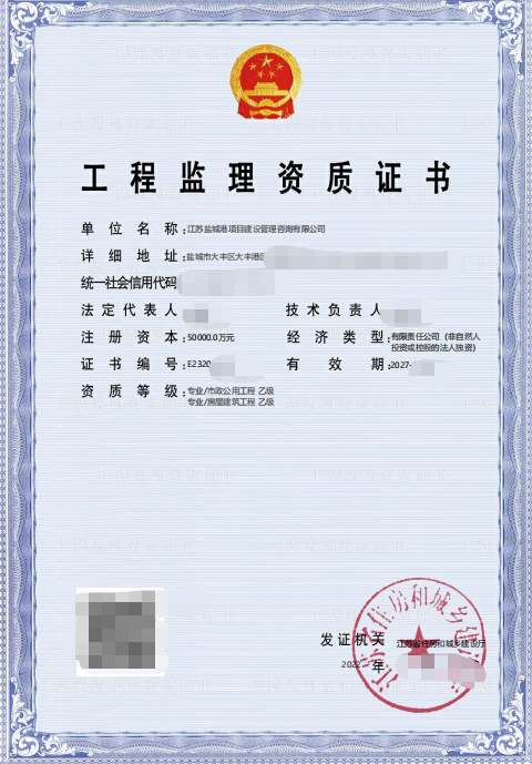 近日,鹽城港項(xiàng)目管理公司正式收到由江蘇省住房和城鄉(xiāng)建設(shè)廳頒發(fā)的“房屋建筑工程乙級(jí)和市政公用工程乙級(jí)”兩項(xiàng)工程監(jiān)理資質(zhì)證書(shū),標(biāo)志著公司資質(zhì)申辦工作取得重大進(jìn)展,對(duì)提升公司品牌影響力和提高市場(chǎng)競(jìng)爭(zhēng)力具有十分重要的意義。