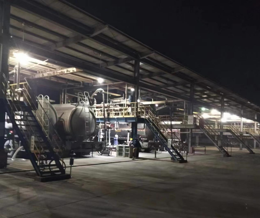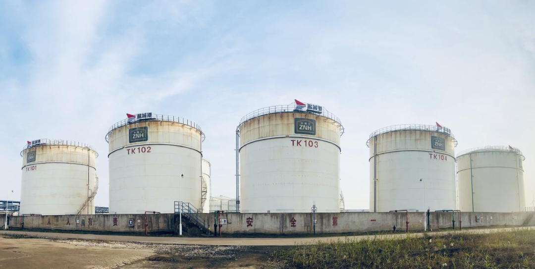 遠(yuǎn)處高聳的白色石化倉(cāng)儲(chǔ)罐