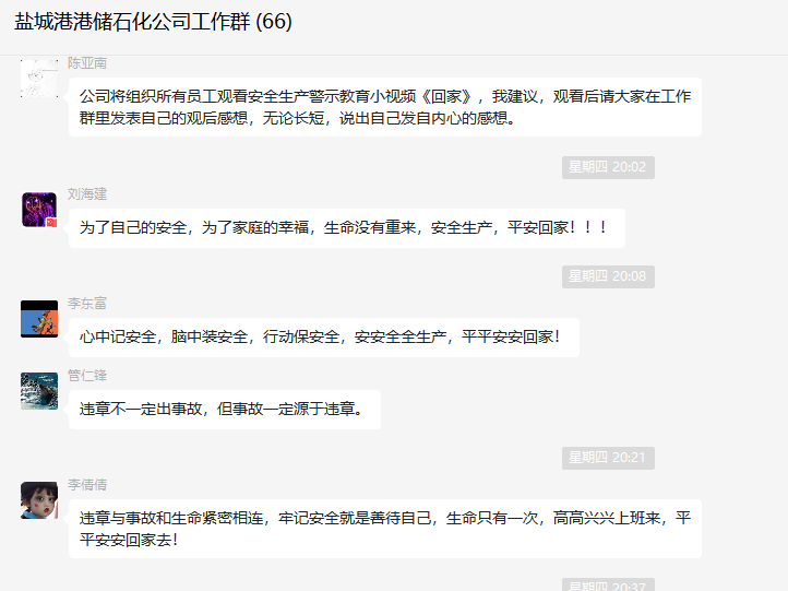 港儲(chǔ)石化利用班前晨會(huì)時(shí)間,組織職工觀看安全生產(chǎn)警示教育視頻,進(jìn)一步增強(qiáng)職工風(fēng)險(xiǎn)防范意識(shí),牢固樹(shù)立起“沒(méi)有安全,一切都是零”的思想觀念。職工紛紛表達(dá)了對(duì)安全生產(chǎn)的決心和對(duì)安全生產(chǎn)堅(jiān)定不移的信念,在思想上完成“要我安全”到“我要安全”的轉(zhuǎn)變。