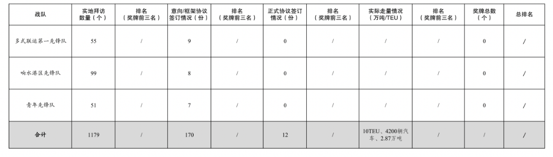 活動開展以來,累計拜訪客戶數(shù)量1179家,簽訂意向/框架協(xié)議數(shù)量170份,簽訂正式協(xié)議12份,實際走量10TEU、4200輛汽車、2.87萬噸。