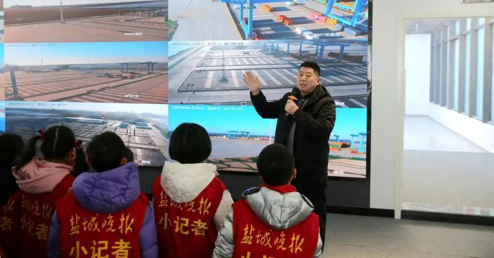 (學生們走進江蘇沿海地區首個自動化集裝箱堆場)