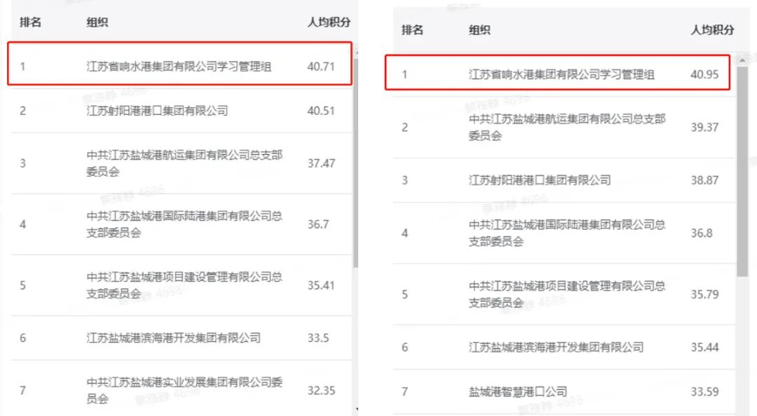 響水港集團學習組學習強國積分人均41分左右,連續多日排名集團系統學習組第一。