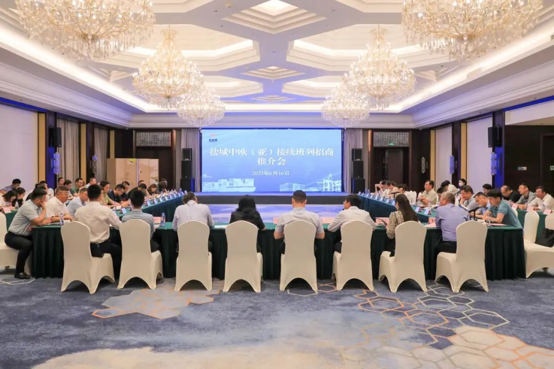 在鹽城港集團(tuán)成立三周年之際,6月16日,中歐(亞)接續(xù)班列“鹽城號(hào)”正式開(kāi)行。市委副書記、統(tǒng)戰(zhàn)部部長(zhǎng)羊維達(dá)出席活動(dòng)并宣布中歐(亞)接續(xù)班列“鹽城號(hào)”首發(fā)開(kāi)通。市委常委、副市長(zhǎng)吳本輝主持活動(dòng)。省國(guó)鐵集團(tuán)黨委副書記、總經(jīng)理丁建奇,省鐵路辦副主任馮兆祥出席并分別致辭。集團(tuán)黨委書記、董事長(zhǎng)周正雄參加活動(dòng)并介紹相關(guān)情況,集團(tuán)黨委副書記、董事、總經(jīng)理陸帥代表集團(tuán)與7家企業(yè)簽訂中歐班列合作協(xié)議。