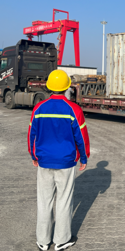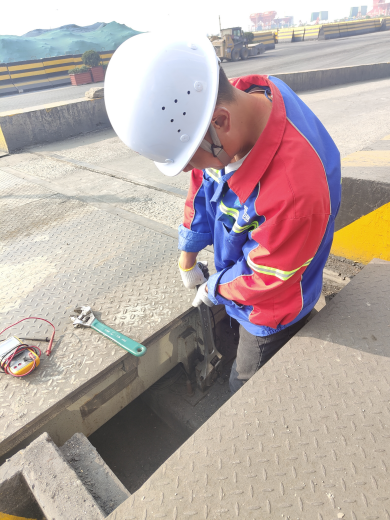 他停留在一臺地磅姥爺旁邊 偶爾會觸碰撫摸
