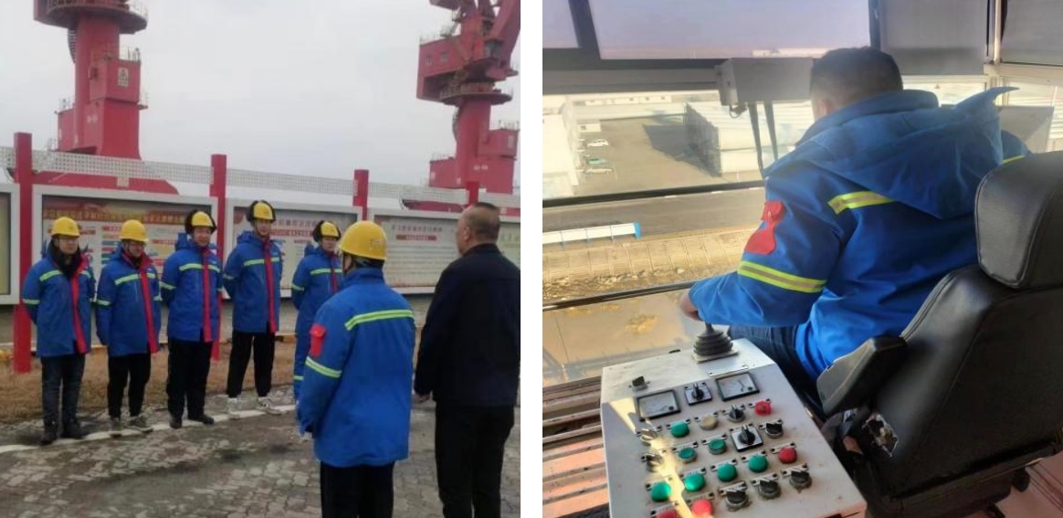 射陽港區風電先鋒隊以高昂的干勁、火熱的激情按下從“假期檔”切換到“工作檔”的加速鍵,從檢查大車行走機構、軌道輪胎,到機械、電氣制動系統再到安全裝置,成員們嚴格按照規范操作流程完成點檢后登上駕駛室,熟練操控操作桿,緊盯著煤炭抓斗提升、回轉、下放,緊繃心神、一氣呵成,以“滿弦”姿態吹響新年奮進號角,奏響龍騰虎躍的青春之歌。